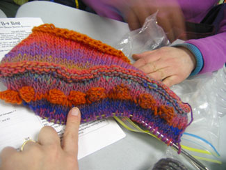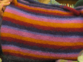 Cheri's making another felted bag and this one has giant bobbles. Look!