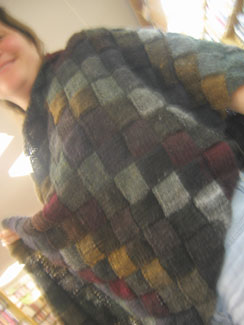 Dana's entrelac stole is still growing. It's going to be gorgeous (if she ever finishes it!).