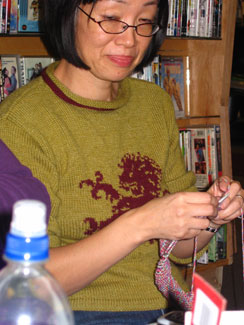 It looked like kids' day today at Knitsmiths. May's daughter and Nina's girls were all working on knitting projects.