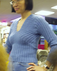 May's latest creation - the Pinup Pullover from Interweave Knits Spring 2003. May's knits are impeccable and she always looks so good in them. Yay, May!